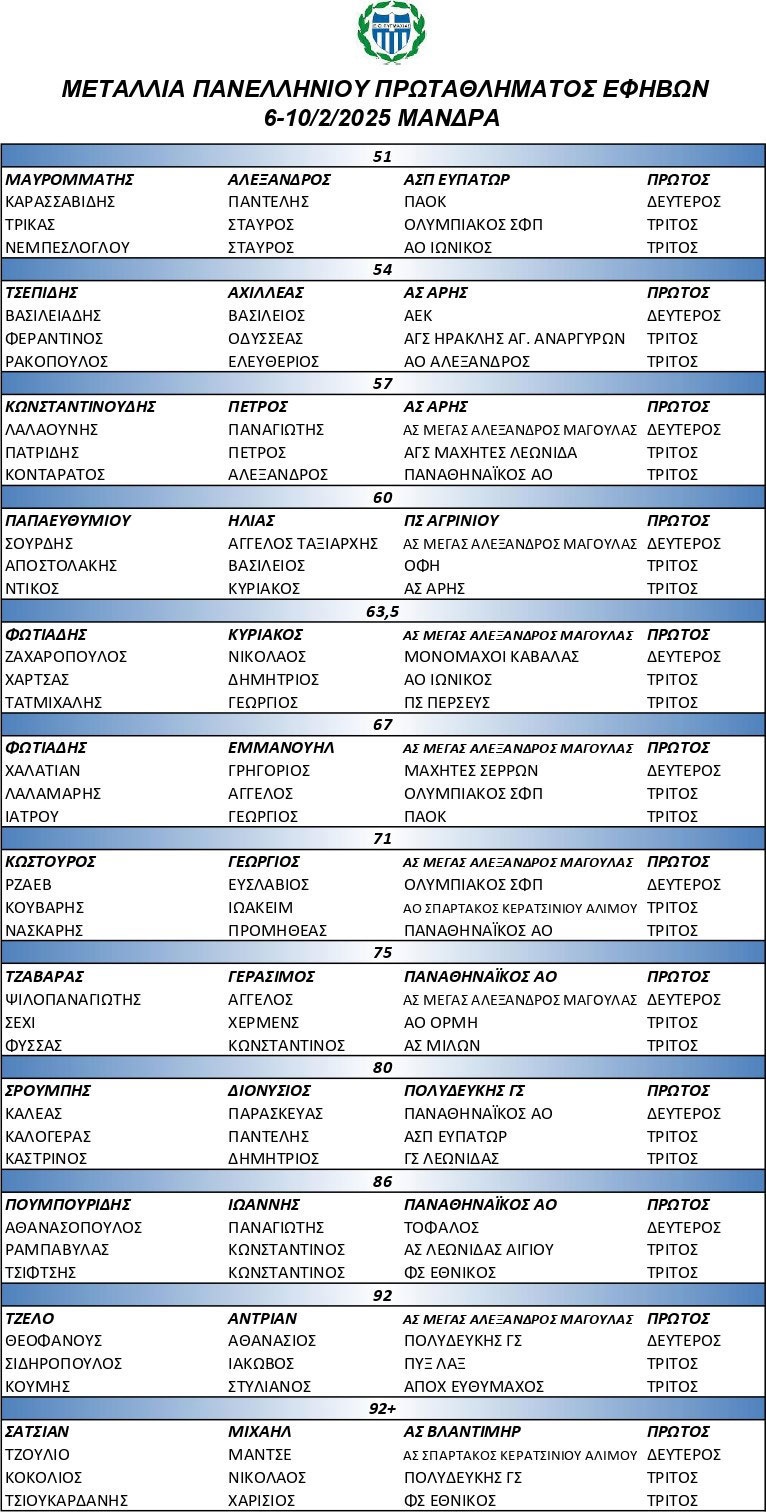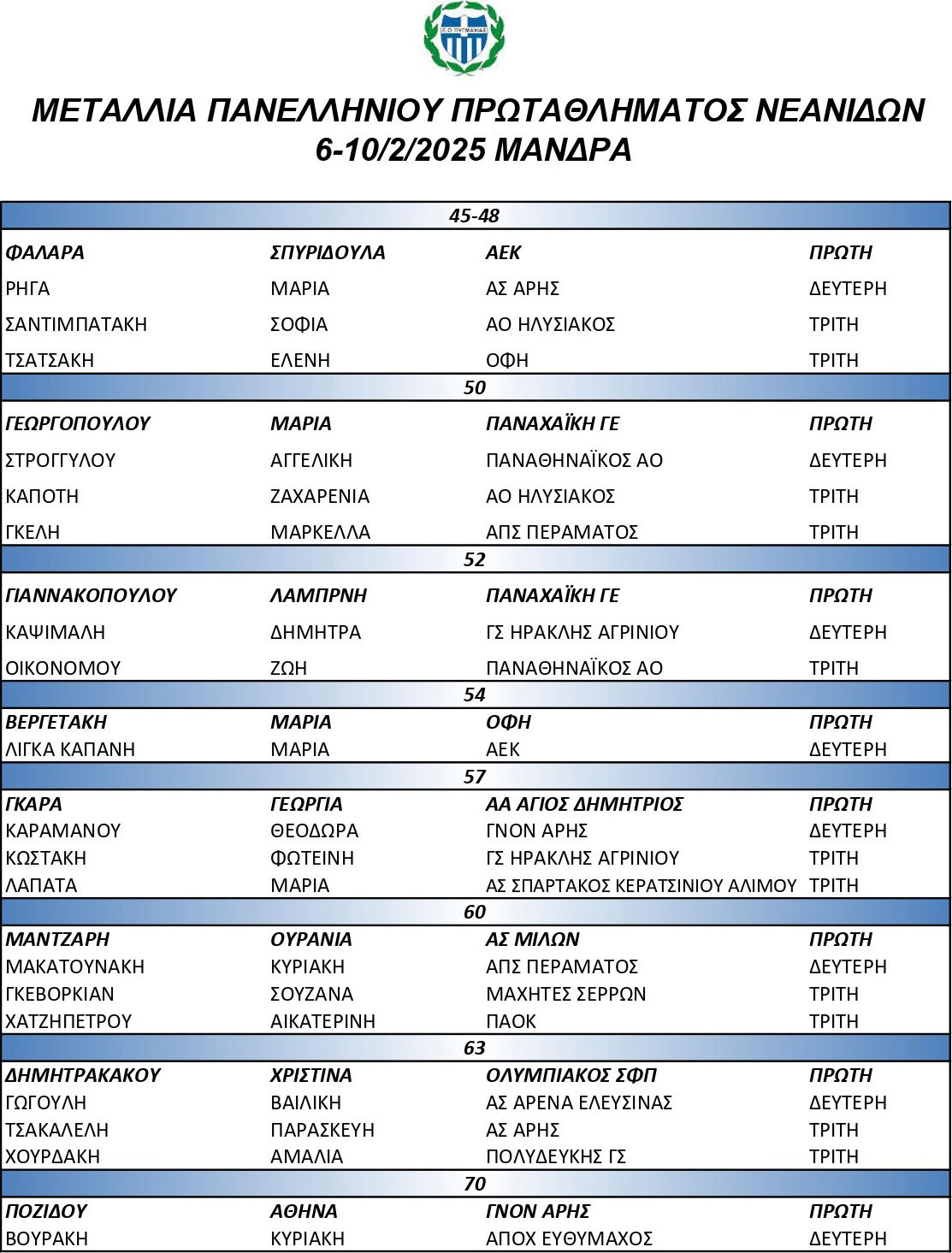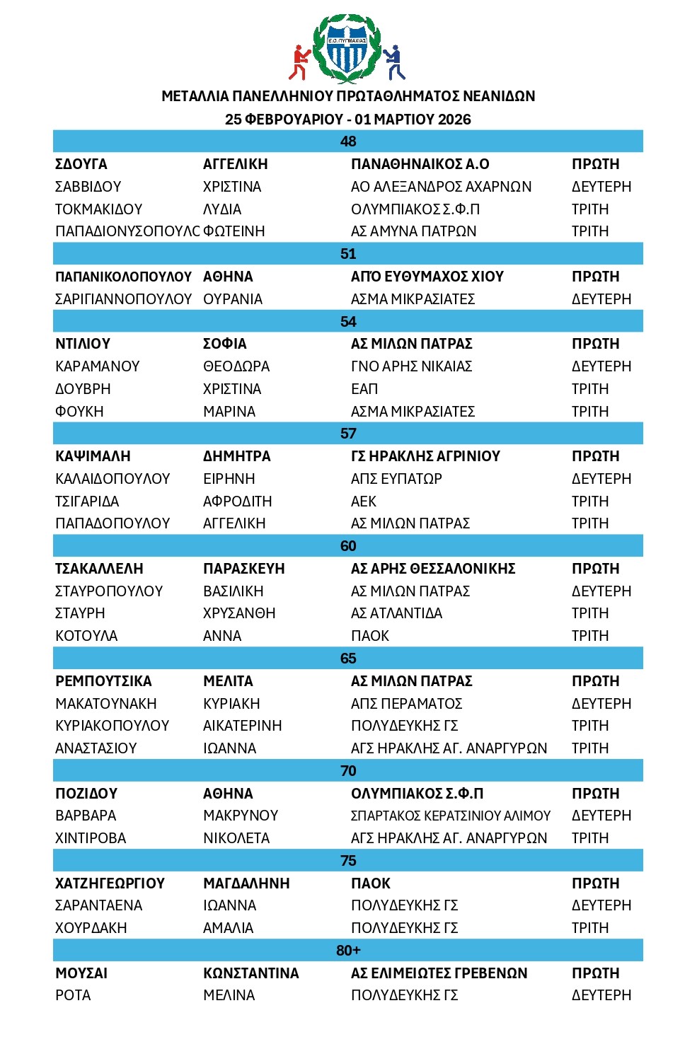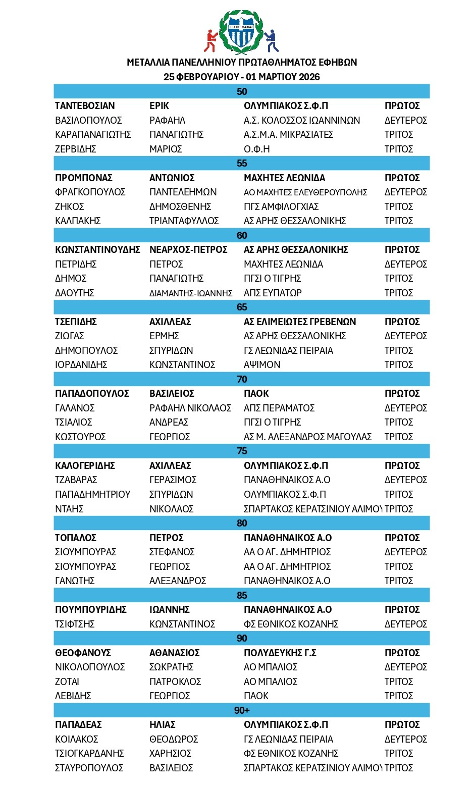 ΠΠ ΕΦΗΒΩΝ 2026 ΠΠ ΝΕΑΝΙΔΩΝ 2026 ΠΠ ΝΕΩΝ ΑΝΔΡΩΝ 2026 ΠΠ ΝΕΩΝ ΓΥΝΑΙΚΩΝ 2026 ΠΠ ΑΝΔΡΩΝ 2025 ΠΠ ΓΥΝΑΙΚΩΝ 2025 ΠΠ ΕΦΗΒΩΝ 2025 ΠΠ ΚΟΡΑΣΙΔΩΝ 2025 ΠΠ ΝΕΑΝΙΔΩΝ 2025 ΠΠ ΝΕΩΝ ΑΝΔΡΩΝ 2025 ΠΠ ΝΕΩΝ ΓΥΝΑΙΚΩΝ 2025 ΠΠ ΠΑΓΚΟΡΑΣΙΔΩΝ 2025 ΠΠ ΠΑΙΔΩΝ 2025 ΠΠ ΠΑΜΠΑΙΔΩΝ 2025