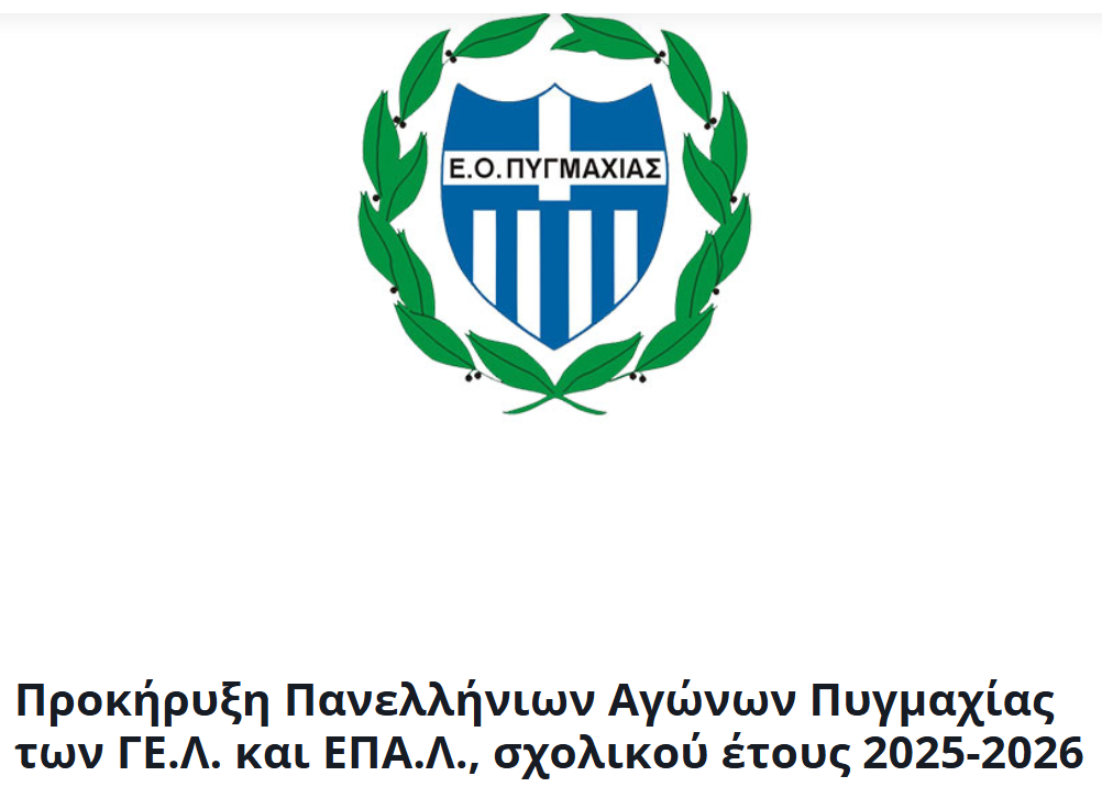 Δημοσιεύθηκε η προκήρυξη για τους Πανελλήνιους Αγώνες Πυγμαχίας μαθητών/μαθητριών ΓΕ.Λ. και ΕΠΑ.Λ. του σχολικού έτους 2025-2026, με καθορισμένες ημερομηνίες, κατηγορίες, προϋποθέσεις συμμετοχής και προθεσμίες δηλώσεων. Για όλα τα έγγραφα, τα έντυπα και τις λεπτομέρειες της διαδικασίας, οι ενδιαφερόμενοι μπορούν να ανατρέξουν στην επίσημη σελίδα της Ελληνική Ομοσπονδία Πυγμαχίας, όπου είναι αναρτημένη η προκήρυξη.