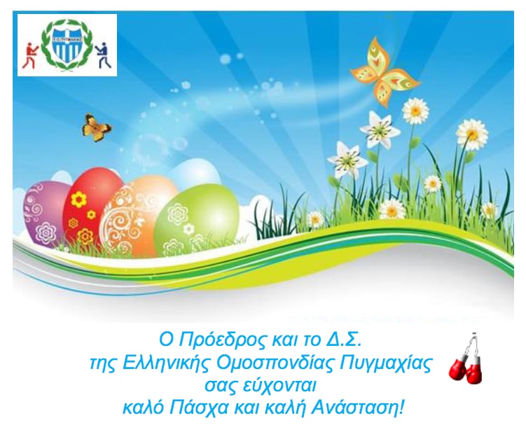 Ο Πρόεδρος και το ΔΣ της Ελληνικής Ομοσπονδίας Πυγμαχίας σας εύχονται καλό Πάσχα και καλή Ανάσταση.